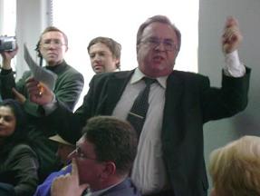 Ìè ïîö³êàâèëèñÿ çì³ñòîì ñòàòò³, ÿêà ðîçãí³âàëà Îëåêñàíäðà Ðîìàíîâè÷à. Ç`ÿñóâàëîñÿ, ùî â ñåðåäèí³ ñåðïíÿ â³í â³äðåàãóâàâ íà ìàòåð³àë, íàäðóêîâàíèé ùå â ÷åðâí³. Ñóòü îïðèëþäíåíî¿ ãàçåòîþ ³ñòî𳿠òàêà: ÷åòâåðî äîáðî䳿â - äåïóòàò ì³ñüêðàäè Âàñèëü Ìèêîëåíêî, äåïóòàò Ñîñí³âñüêî¿ ðàéðàäè Âàëåíòèíà ²âàøêåâè÷, ïîì³÷íèê íàðîäíîãî äåïóòàòà Àíäð³é Ñåãåäà òà ãîëîâà êîì³òåòó ñàìîîðãàí³çàö³¿ íàñåëåííÿ ÷åòâåðòîãî ì³êðîðàéîíó Àíäð³é ѳïêî – ïðàãíóëè â³äâ³äàòè óñòàíîâ÷³ çáîðè ç³ ñòâîðåííÿ îðãàíó ñàìîîðãàí³çàö³¿ íàñåëåííÿ ó ÇÎØ ¹ 3. Âõ³ä äî çàëè ¿ì çàáëîêóâàëè íåâ³äîì³, à ïðèñóòí³é ïðè öüîìó Ðàäóöüêèé çàÿâèâ ãðîìàäñüêèì ä³ÿ÷àì: „Ìàô³ÿ áåçñìåðòíà, ³ âè íàñ íå ïåðåìîæåòå...”.