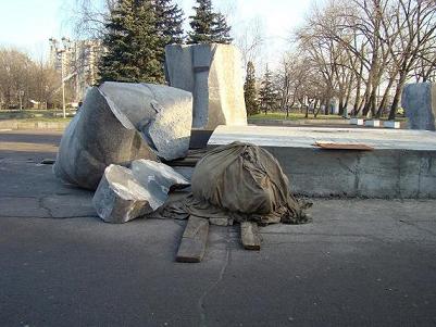 .jpg) Îáëîìêè ïàìÿòíèêà â ïàðêå "Ïîáåäà" (äåêàáðü 2008 ãîä)