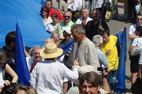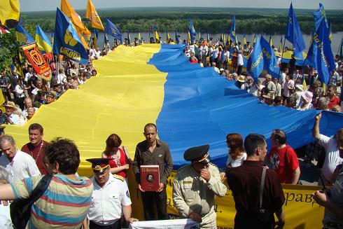 .jpg) Îïîçèö³ÿ ðîçãîðíóëà íàéá³ëüøèé ïðàïîð Óêðà¿íè