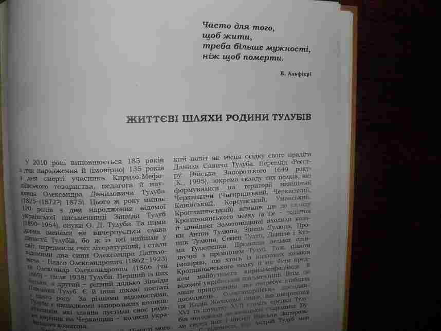 Двух ректоров Черкасского национального университета – Кузьминского и Полищука – разъединила оранжевая революция. В 2004-м они очутились по разные стороны баррикад. Спустя годы они снова вместе. Их объединил…Тулуб. К сожалению, Провинция не смогла своевременно отреагировать на появление книги Анатолия Кузьминского и Владимира Полищука «Дороги жизни рода Тулубов» (Життєві шляхи родини ТУЛУБІВ; в оригинале все буквы фамилии – заглавные). Тираж книжицы невелик – всего тысяча экземпляров. Собственно говоря, к действующему черкасскому губернатору книжка имеет опосредованное отношение. Сам Сергей Борисович, кокетливо наклонивший голову на ладошку, в предисловии к изданию отмечает, что речь пойдет о его однофамильцах. И действительно, авторы повествуют об участнике Кирило-Мефодиевского братства Александре Тулубе, его внучке - писательнице Зинаиде Тулуб, о других представителях творческой и научной интеллигенции, носивших эту фамилию. Сколько в книге Кузьминского, а сколько Полищука – на глазок не определишь. По форме «Тулубовы дороги…» - типичный студенческий реферат. В книжке – изобилие воспоминаний, биографических дат, цитат, фотографий. Скомпилировать подобное смог бы студент филфака, вооружившись терпением и поисковиком Гугла. Но профессора Кузьминский и Полищук не доверили литературным неграм дело огромной важности. Ключ этого нехитрого труда – в конце. «А что дальше? – спрашивают авторы у себя и читателя. – А дальше нужно продолжать поиски родословных линий династии Тулубов. Еще далеко не все открыто и выяснено о каждой из названных в книге личности… Недавно побывали мы у одного из богуславских Тулубов – Федора Ивановича…родного дяди действующего руководителя области – Сергея Борисовича Тулуба. Кстати, стоит сказать, что Сергей Борисович очень деятельно интересуется генеалогией Тулубов. Он не причисляет себя к славному роду кирилломефодиевца, но хочет разобраться в родословных хитросплетениях. А еще – содействует изданию книг своих пока что только однофамильцев…» Что не говори, профессора продемонстрировали всем, что есть «Болшой политИк». Казалось бы, при чем здесь Тулуб? Однофамилец и только. Однако многие чиновники поспешили обзавестись ректорской книжицей, примостив оную в портретном иконостасе за спиной - между Николой Угодником, Президентом и губернатором. Книжка стала своеобразной визитной карточкой сопричастности к «высшим сферам». «Малой землей» и «Целиной» в одном флаконе. Будем надеяться, что возможный переход Сергея Борисовича «на другую работу» не остудит творческий пыл авторов, которые продолжат изучение генеалогии Тулубов уже при следующем губернаторе. Ведь эти беспокойные творческие умы чужды политической коньюктуре. Не так ли, Анатолий Иваныч и Владимир Трохымыч?