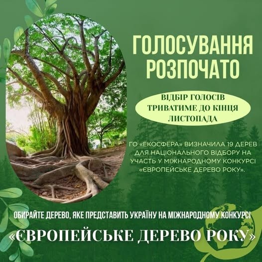 Цьогоріч у національному відборі беруть участь 19 унікальних дерев. До голосування запрошують долучитися всіх охочих, щоб обрати дерево, яке представить Україну на міжнародній арені.