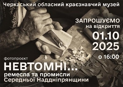 Як інформують в управлінні культури та охорони культурної спадщини Черкаської ОВА, етнопроєкт «Невтомні… ремесла та промисли Середньої Наддніпрянщини» відкриють у Черкаському обласному краєзнавчому музеї.