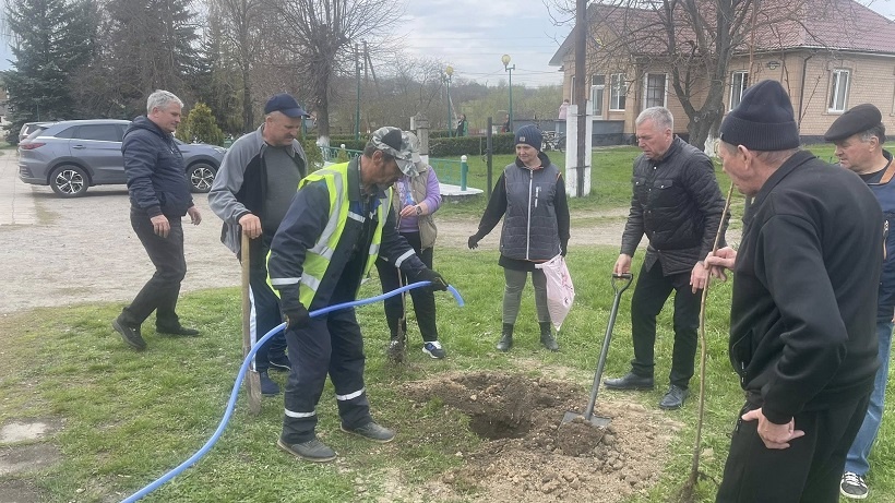 У Майданецькому на Тальнівщині висадили алею з сакур та ялинок на честь полеглого захисника Василя Шебастюка