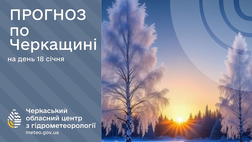 Як інформують у Черкаському гідрометцентрі, на 8 год на Черкащині від 15 до 19º морозу, вітер північний 1-3 м/с , відносна вологість 87%, атмосферний тиск високий, 773 мм.рт.ст.