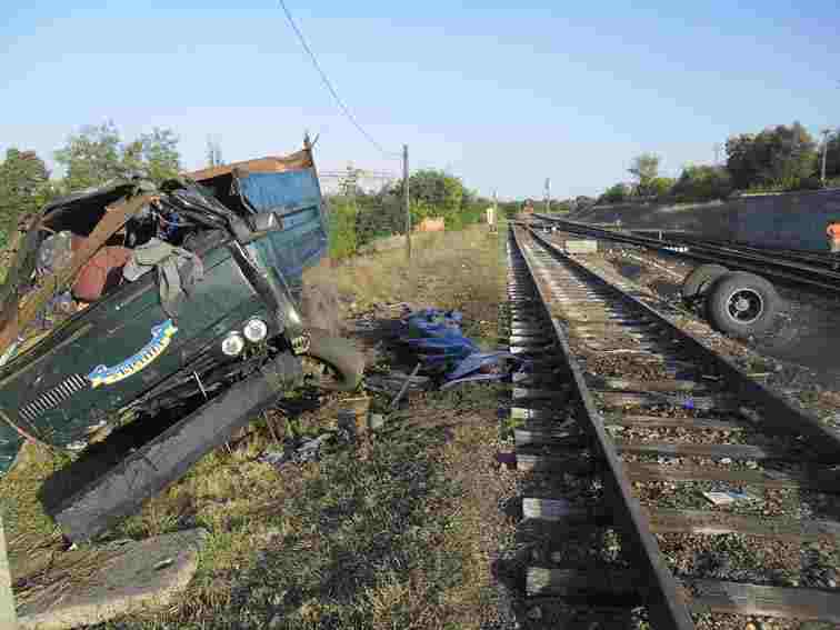 Під час перекидання вантажівка перегородила шлях залізницею, а пальне, яке знаходилось в баку автомобіля, розлилося.