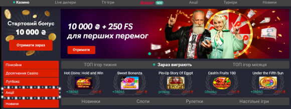 2. Обрати розділ з ігровими автоматами. Найпопулярніші слоти доступні безпосередньо в центральній області головної сторінки.